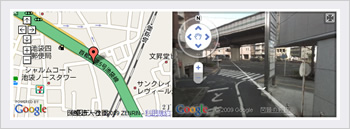 「ストリートビュー」はGoogle社が提供しております、街並みの様子を360度パノラマ写真で閲覧できるサービスです。